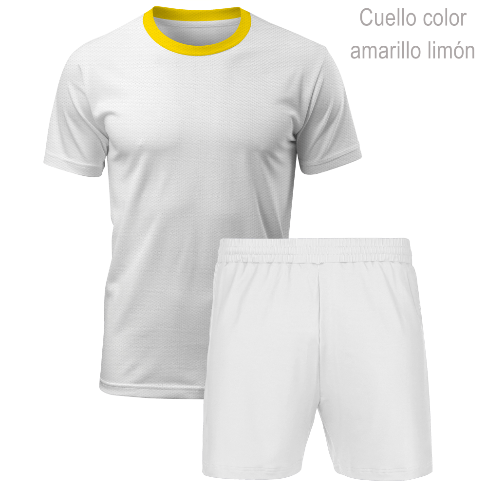 En este conjunto puedes personalizar la totalidad de la parte delantera y trasera de ambas prendas y las mangas de la camiseta. También podrás escoger el color del cuello.