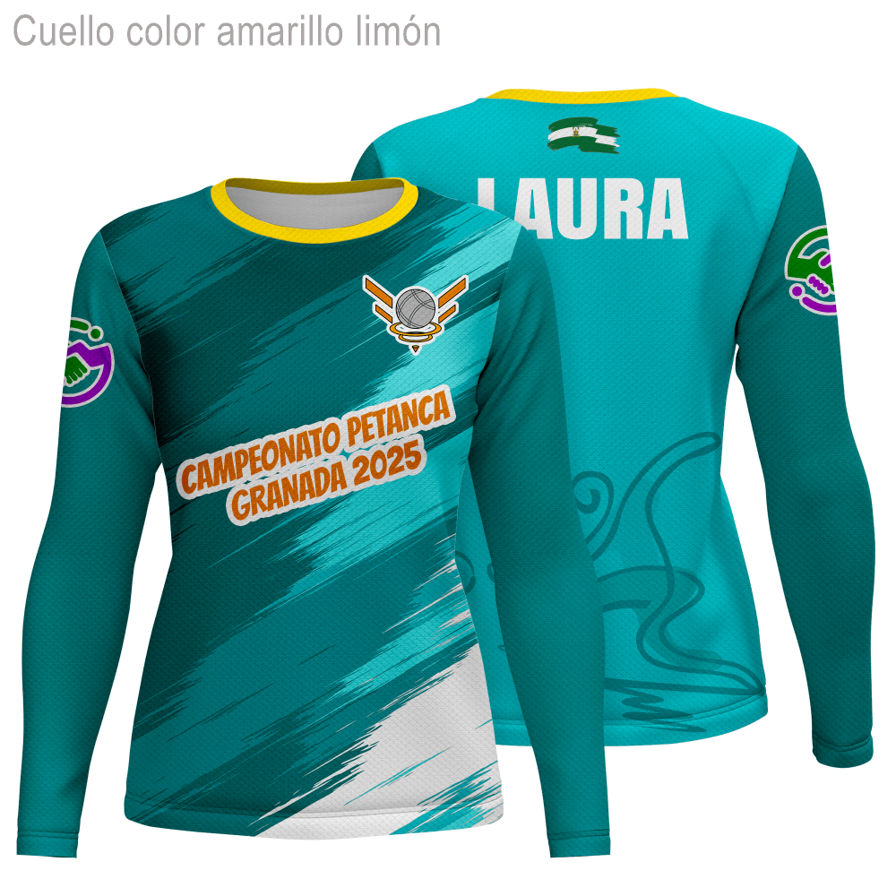 Camiseta petanca manga larga de mujer 100% fullprint personalizada