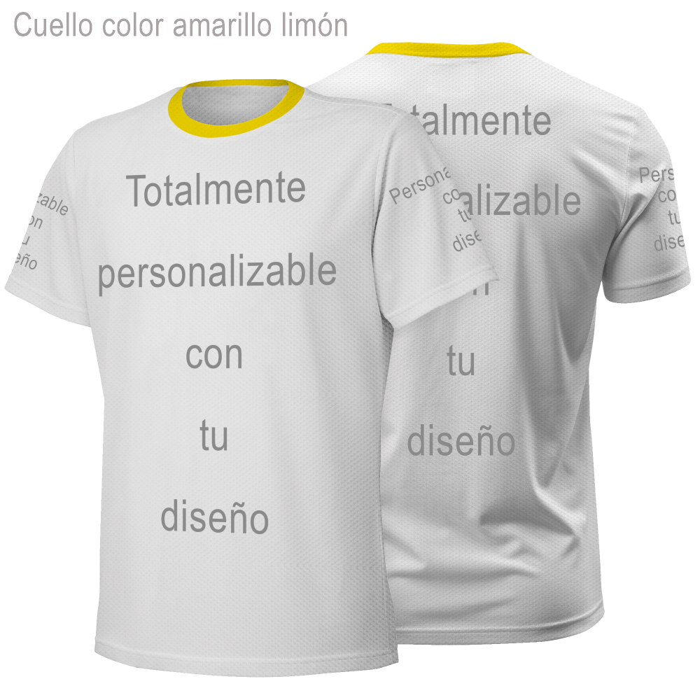 Personaliza la camiseta al 100%: delante, espalda y mangas. También podrás escoger el color del cuello.