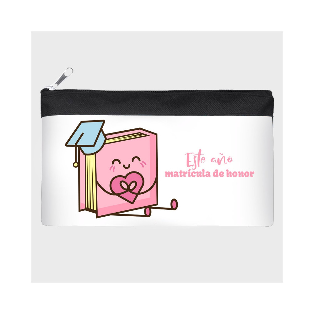 Estuche en elegante poliéster 600D en combinación de colores negro y blanco. Estampado con un mensaje motivador para que no se te haga tan cuesta arriba la época escolar