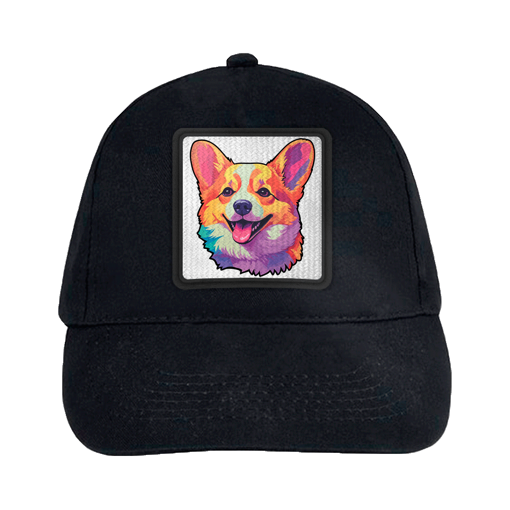 Gorra infantil con cierre ajustable con velcro disponible en cinco colores, diseño Corgi Colorido