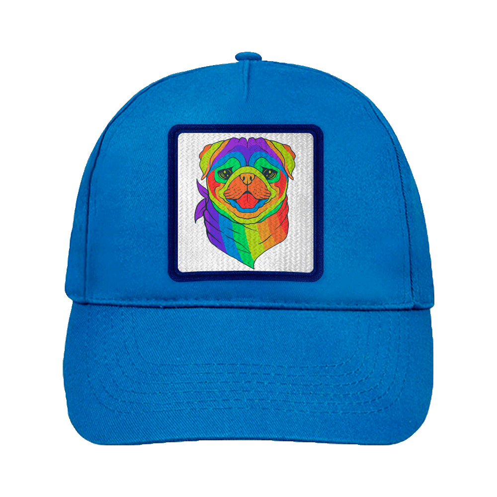 Gorra infantil con cierre ajustable con velcro disponible en cinco colores, diseño Pug Arcoíris