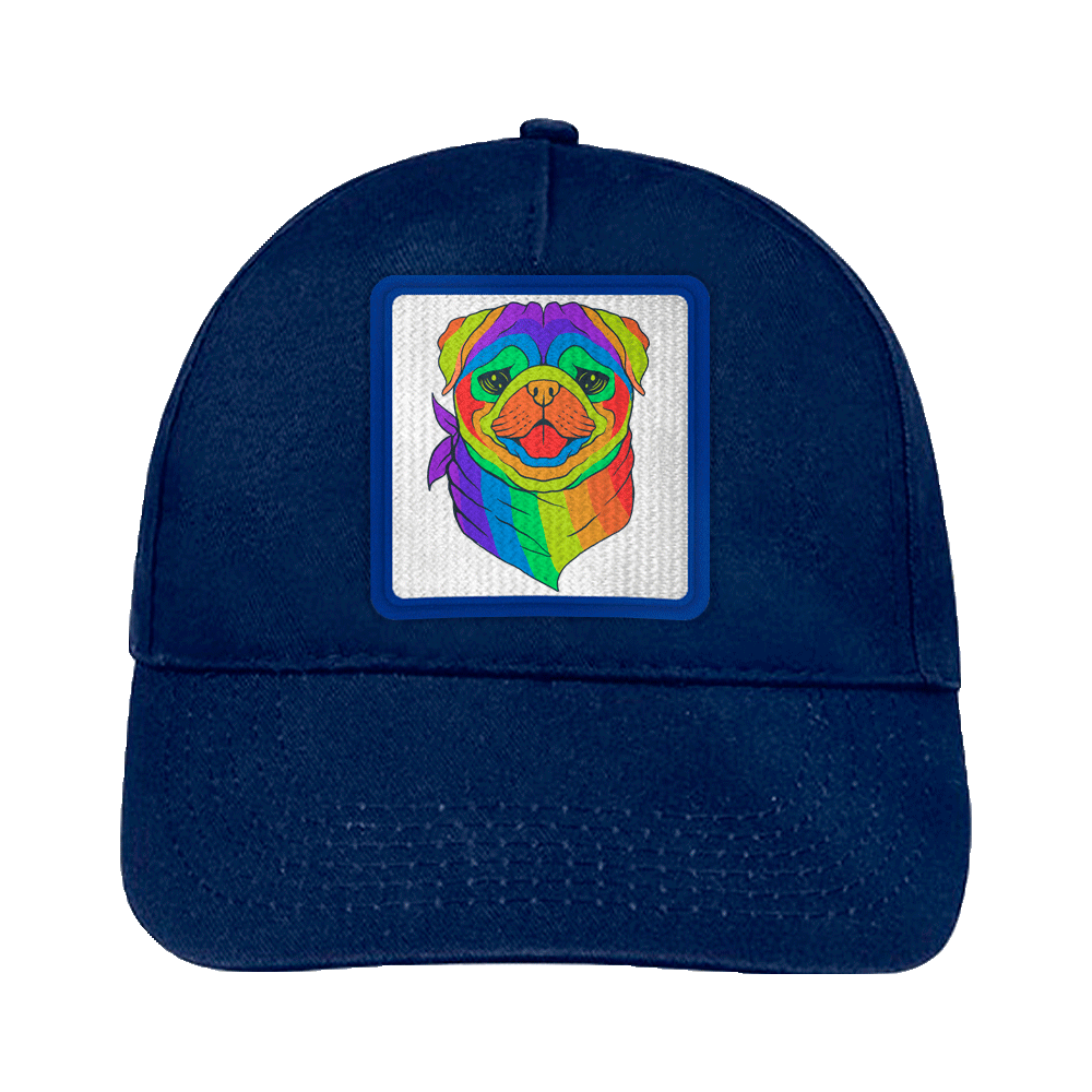 Gorra infantil con cierre ajustable con velcro disponible en cinco colores, diseño Pug Arcoíris