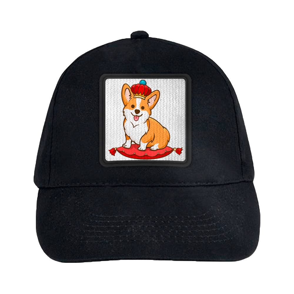 Gorra infantil con cierre ajustable con velcro disponible en cinco colores, diseño Rey Corgi