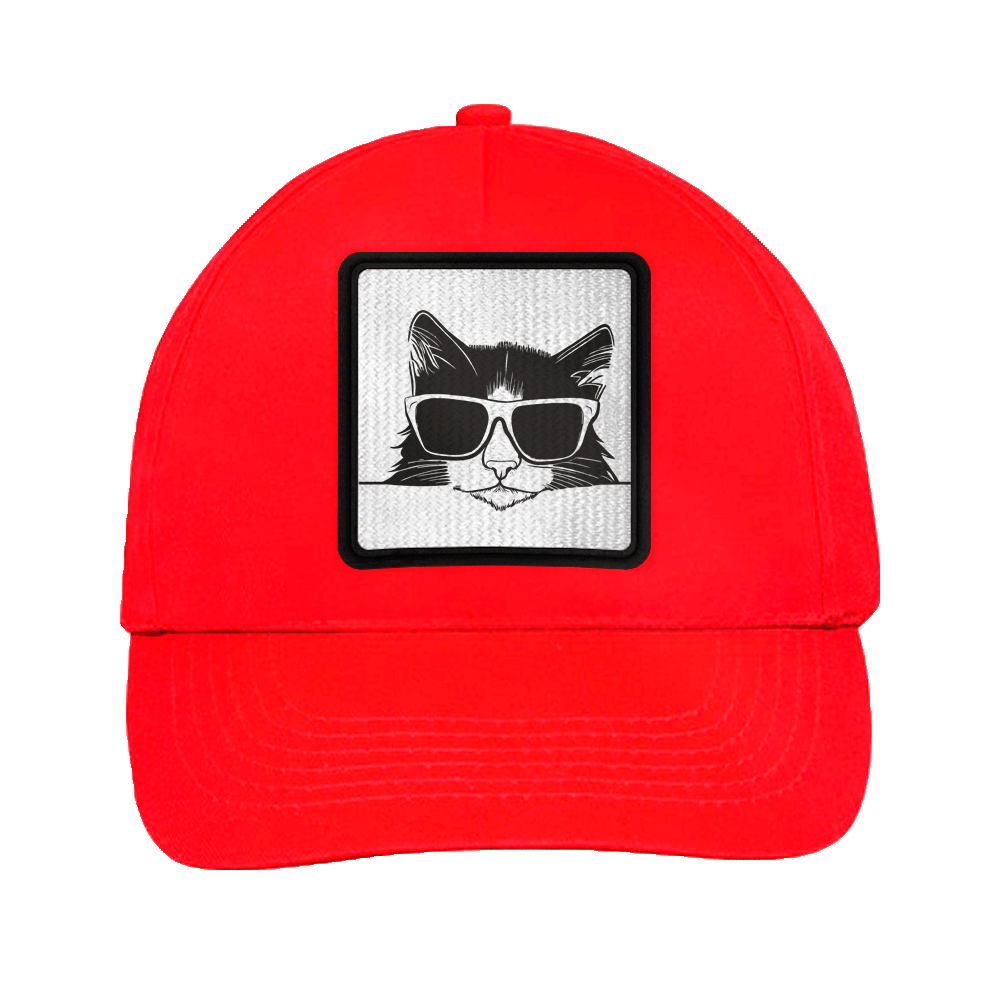 Gorra infantil con cierre ajustable con velcro disponible en cinco colores, diseño Silueta Gato Con Gafas