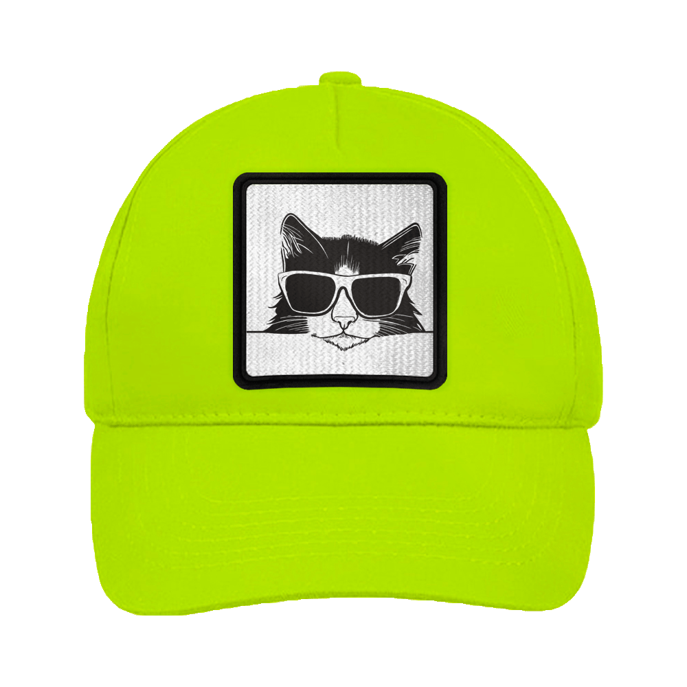 Gorra infantil con cierre ajustable con velcro disponible en cinco colores, diseño Silueta Gato Con Gafas