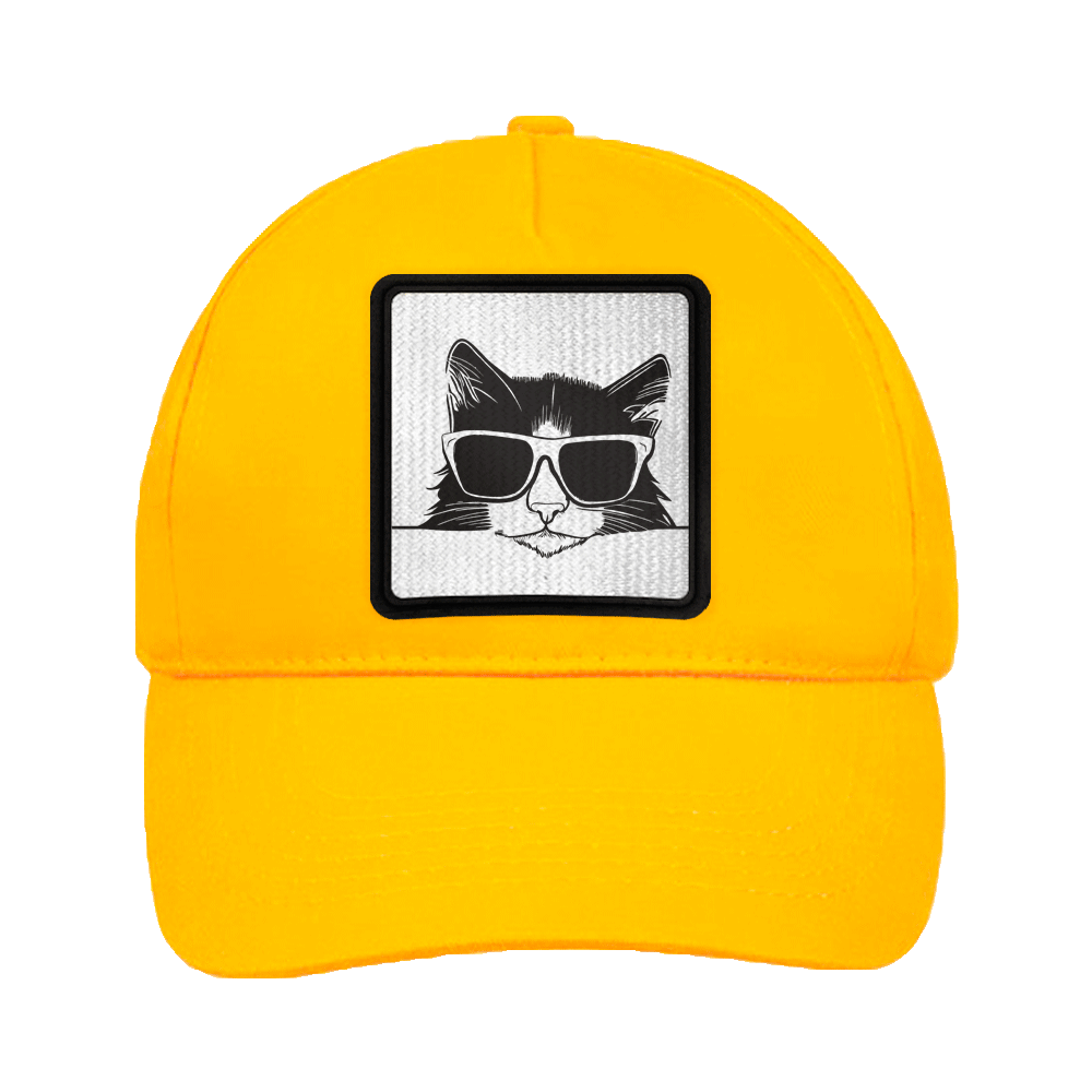 Gorra infantil con cierre ajustable con velcro disponible en cinco colores, diseño Silueta Gato Con Gafas