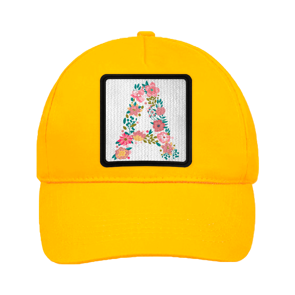 Gorra infantil con cierre ajustable con velcro disponible en cinco colores, diseño Letra A