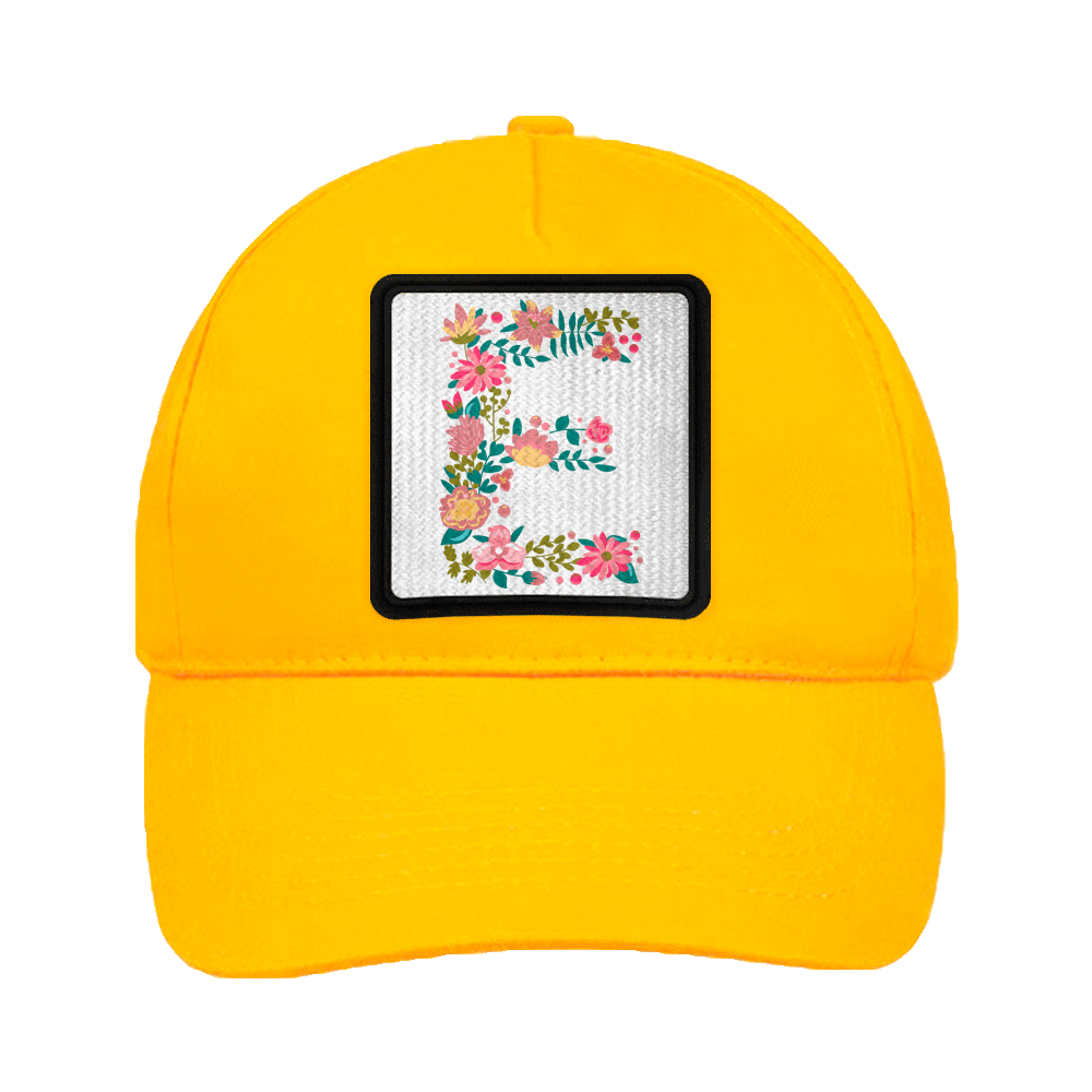 Gorra infantil con cierre ajustable con velcro disponible en cinco colores, diseño Letra E