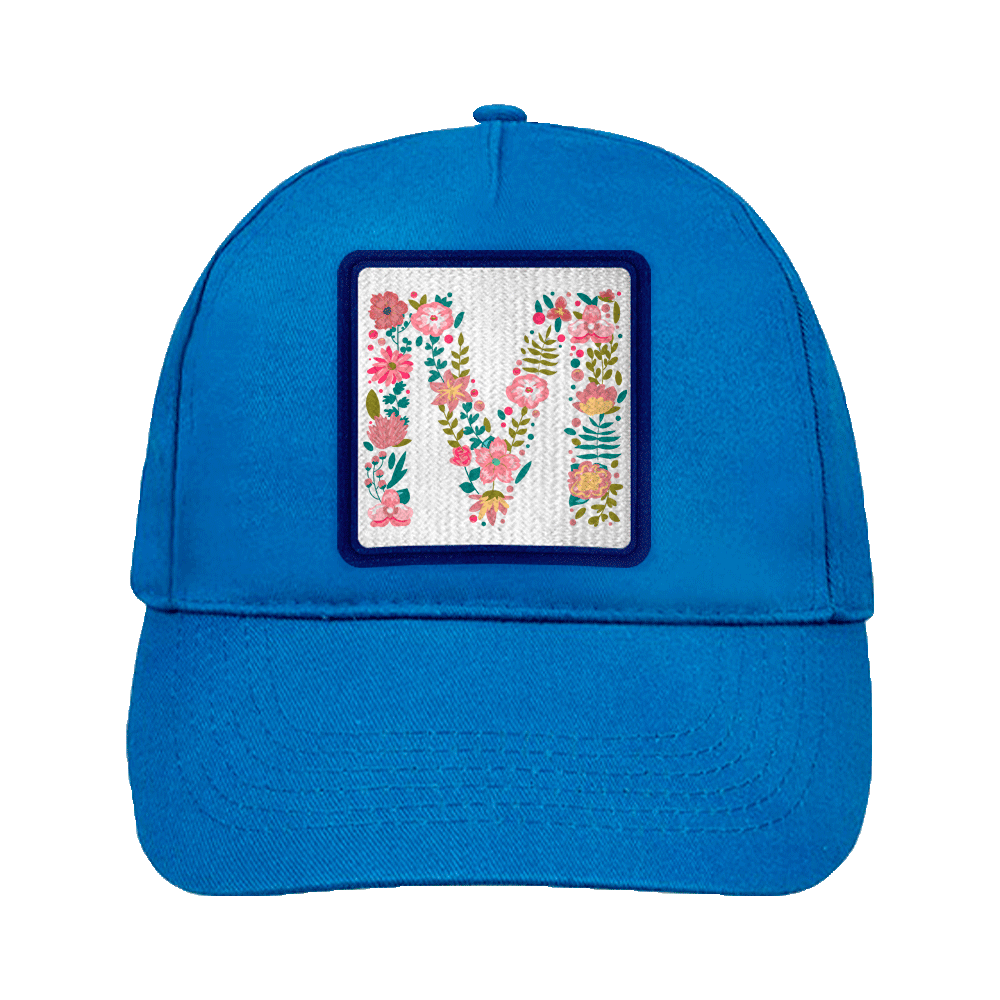 Gorra infantil con cierre ajustable con velcro disponible en cinco colores, diseño Letra M