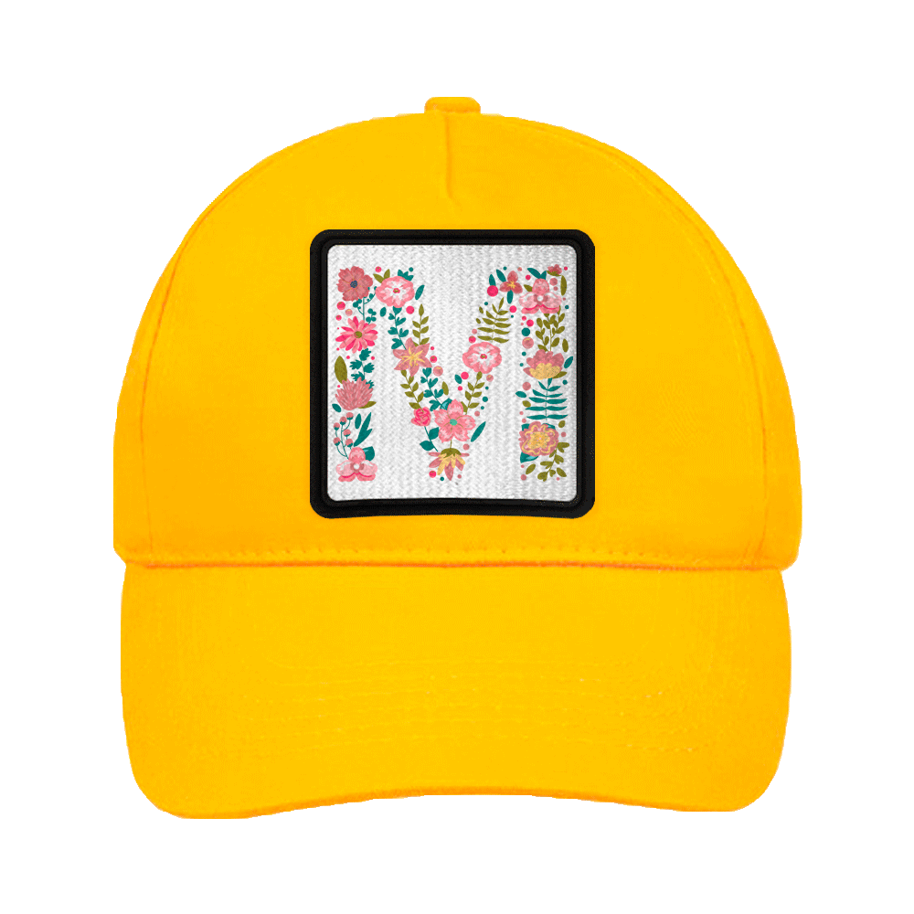 Gorra infantil con cierre ajustable con velcro disponible en cinco colores, diseño Letra M