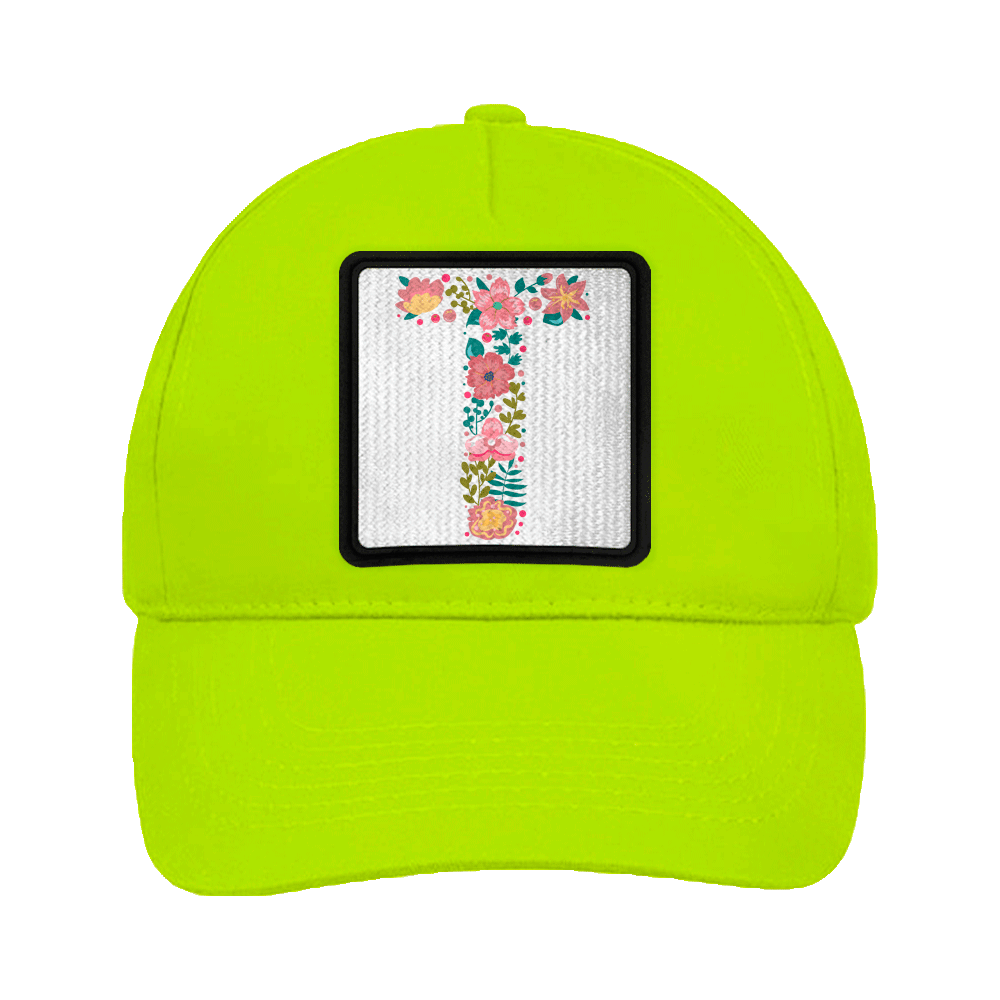 Gorra infantil con cierre ajustable con velcro disponible en cinco colores, diseño Letra T