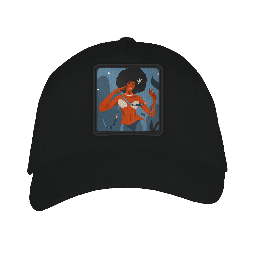 - Contorno del parche de DTF Eco Flock color negro o marino, ayuda a reforzar el agarre del parche a la gorra.