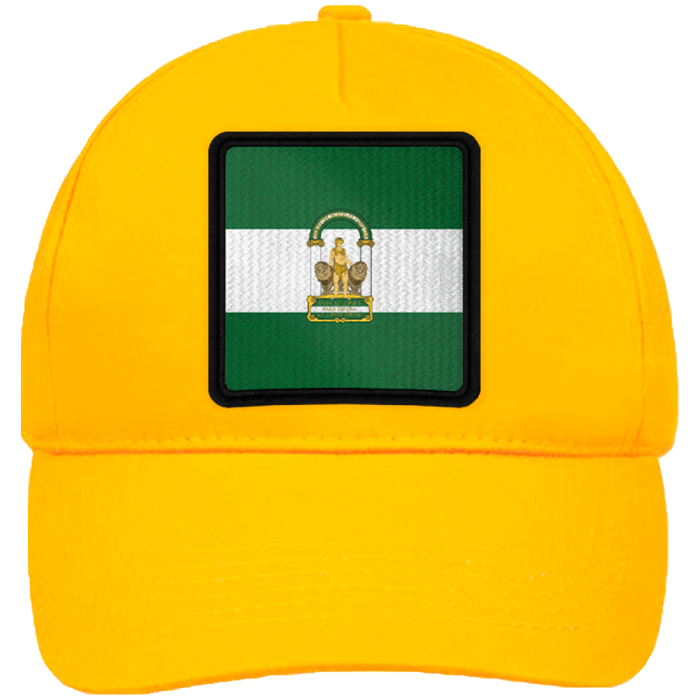 Gorra infantil con cierre ajustable con velcro disponible en seis colores, con bandera de Andalucía
