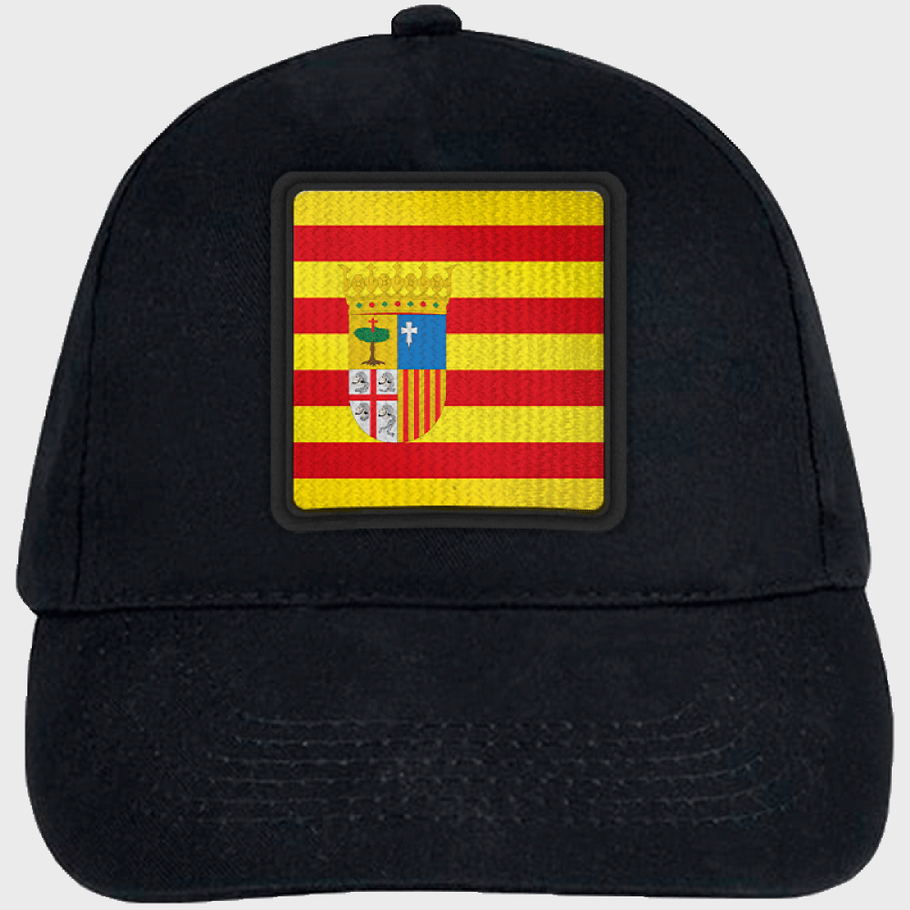 Gorra infantil con cierre ajustable con velcro disponible en cinco colores, con la bandera de Aragón
