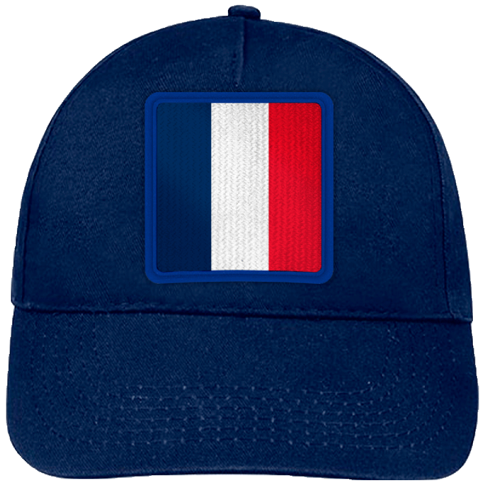 Gorra infantil con cierre ajustable con velcro disponible en seis colores, con la bandera de Francia.