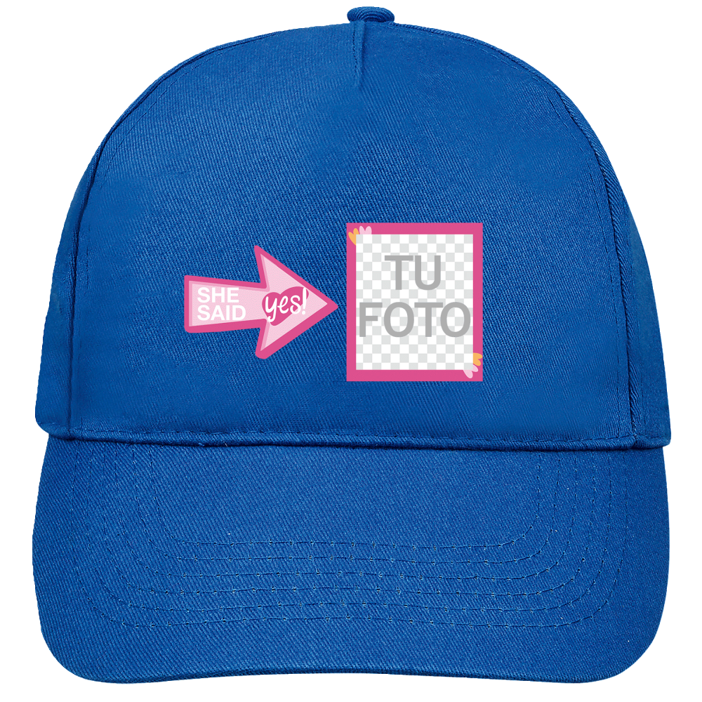 Personaliza el diseño con la foto de la novia: Puedes personalizar la gorra con la cara de la novia. Añade el producto al personalizador, sube la foto y colócala en el recuadro correspondiente.