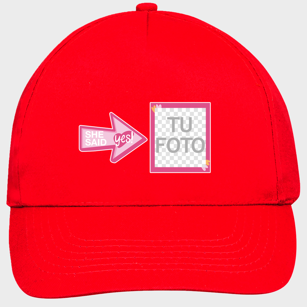 Personaliza el diseño con la foto de la novia: Puedes personalizar la gorra con la cara de la novia. Añade el producto al personalizador, sube la foto y colócala en el recuadro correspondiente.