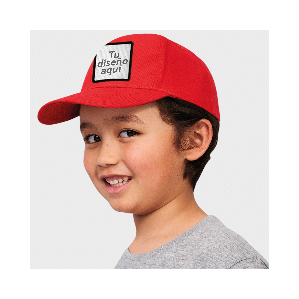 Gorra infantil con cierre ajustable con velcro disponible en cinco colores, tiene incluido un parche que puedes personalizar con el diseño que desees.