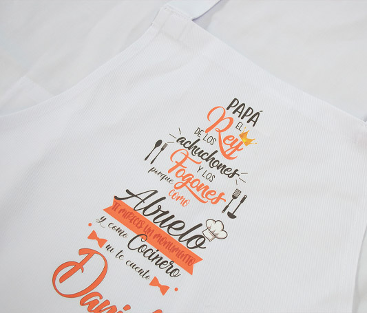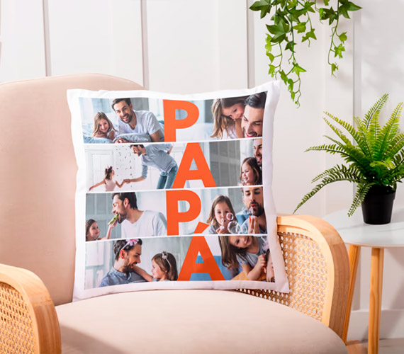Padre: detalles personalizados pensados para el día a día, como un delantal para el cocinero de la casa, una taza especial para el desayuno o un cojín con una frase familiar.
