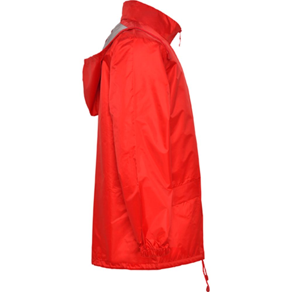 Con cordones ajustables y topes. Capucha plegada en el cuello con cordones.