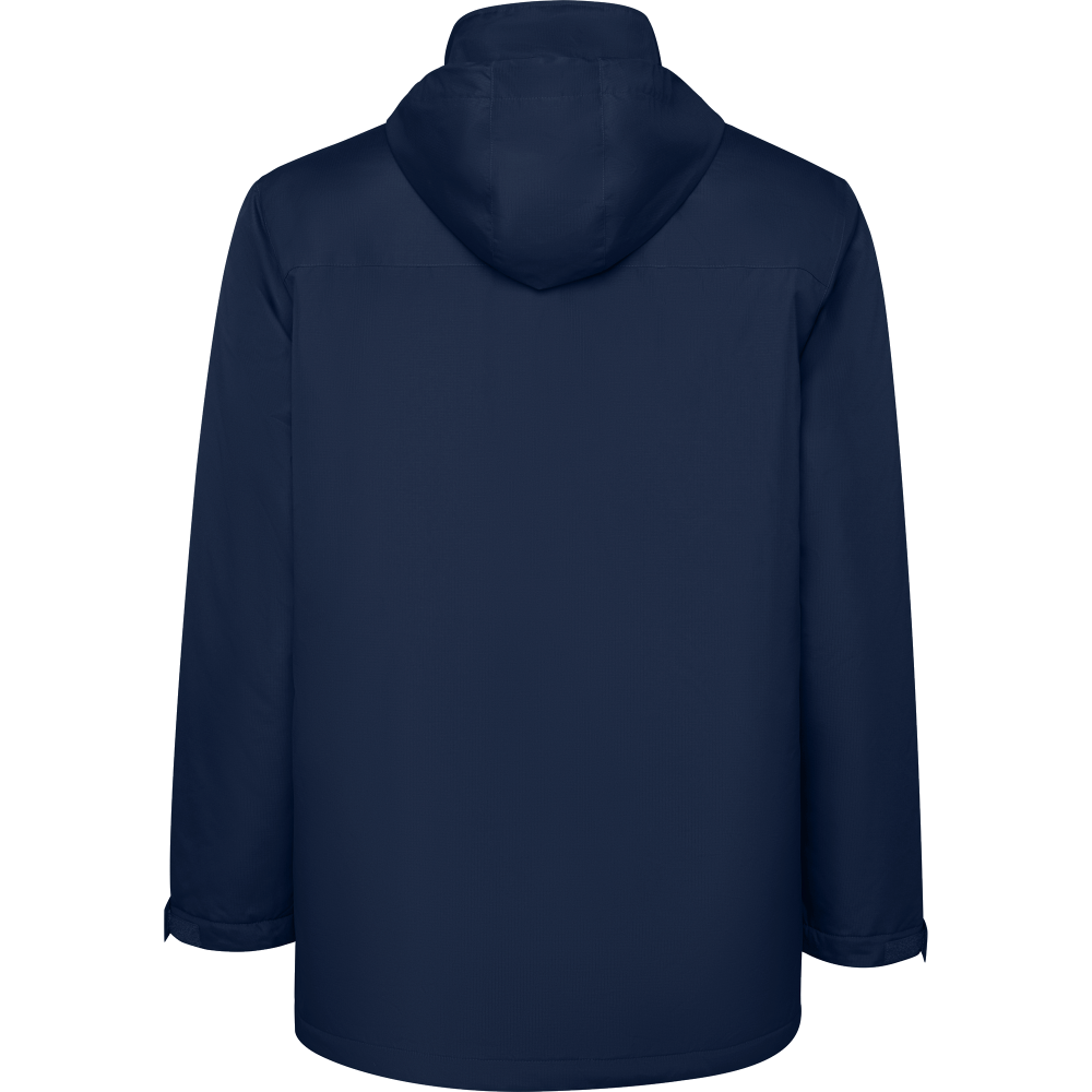 Parka acolchada de tejido impermeable a prueba de viento. Cuello alto con capucha plegable y cierre de velcro