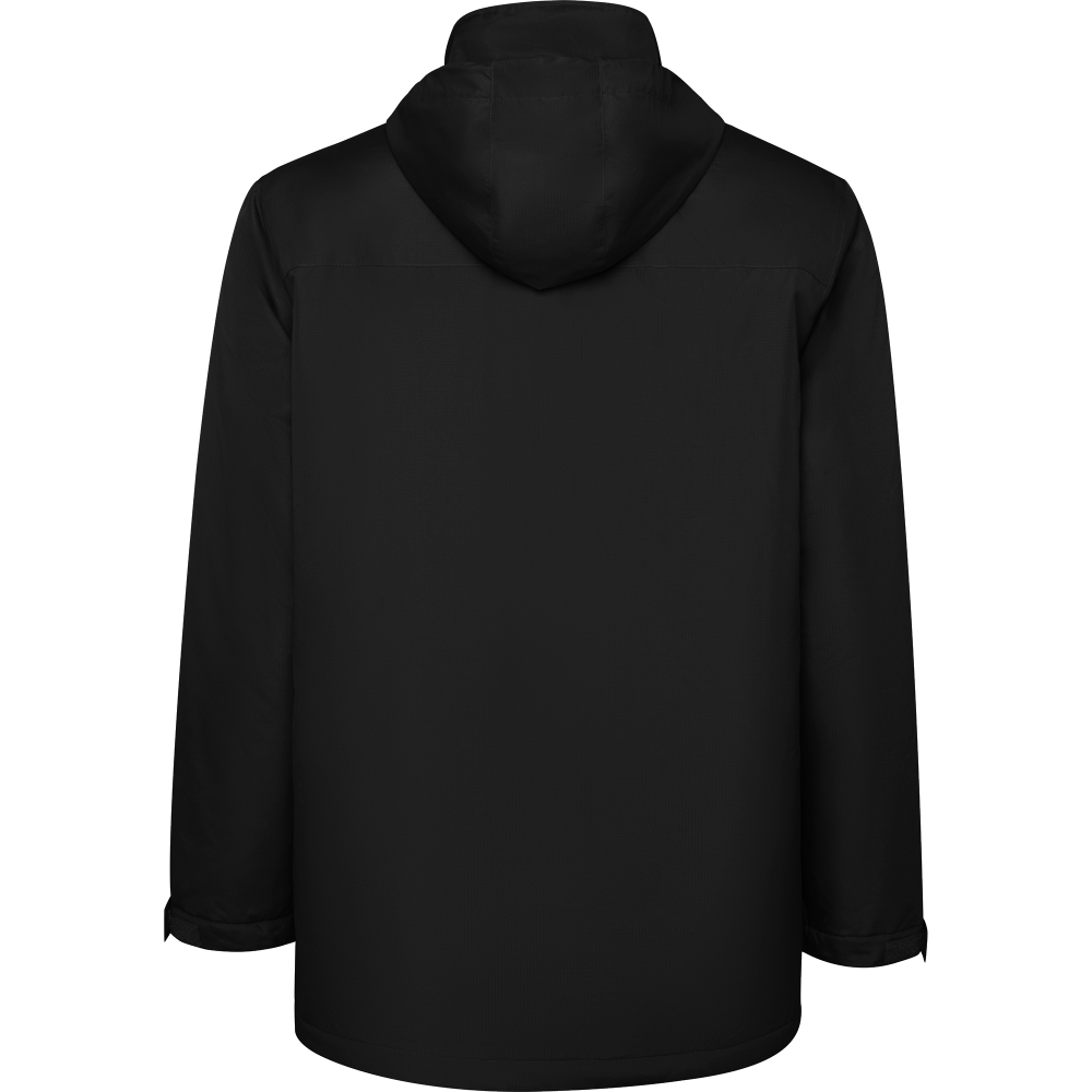 Parka acolchada de tejido impermeable a prueba de viento. Cuello alto con capucha plegable y cierre de velcro