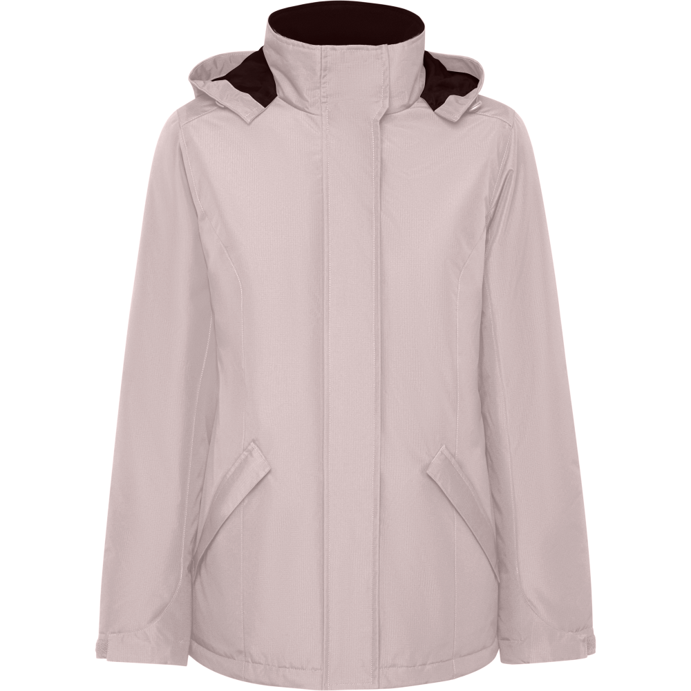 Parka acolchada de tejido impermeable a prueba de viento. Cuello alto con capucha plegable y cierre de velcro