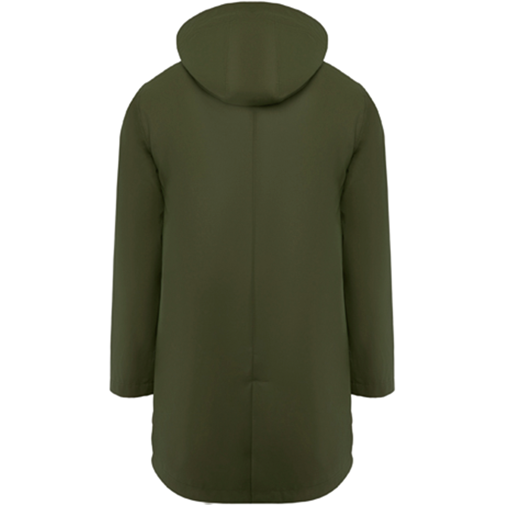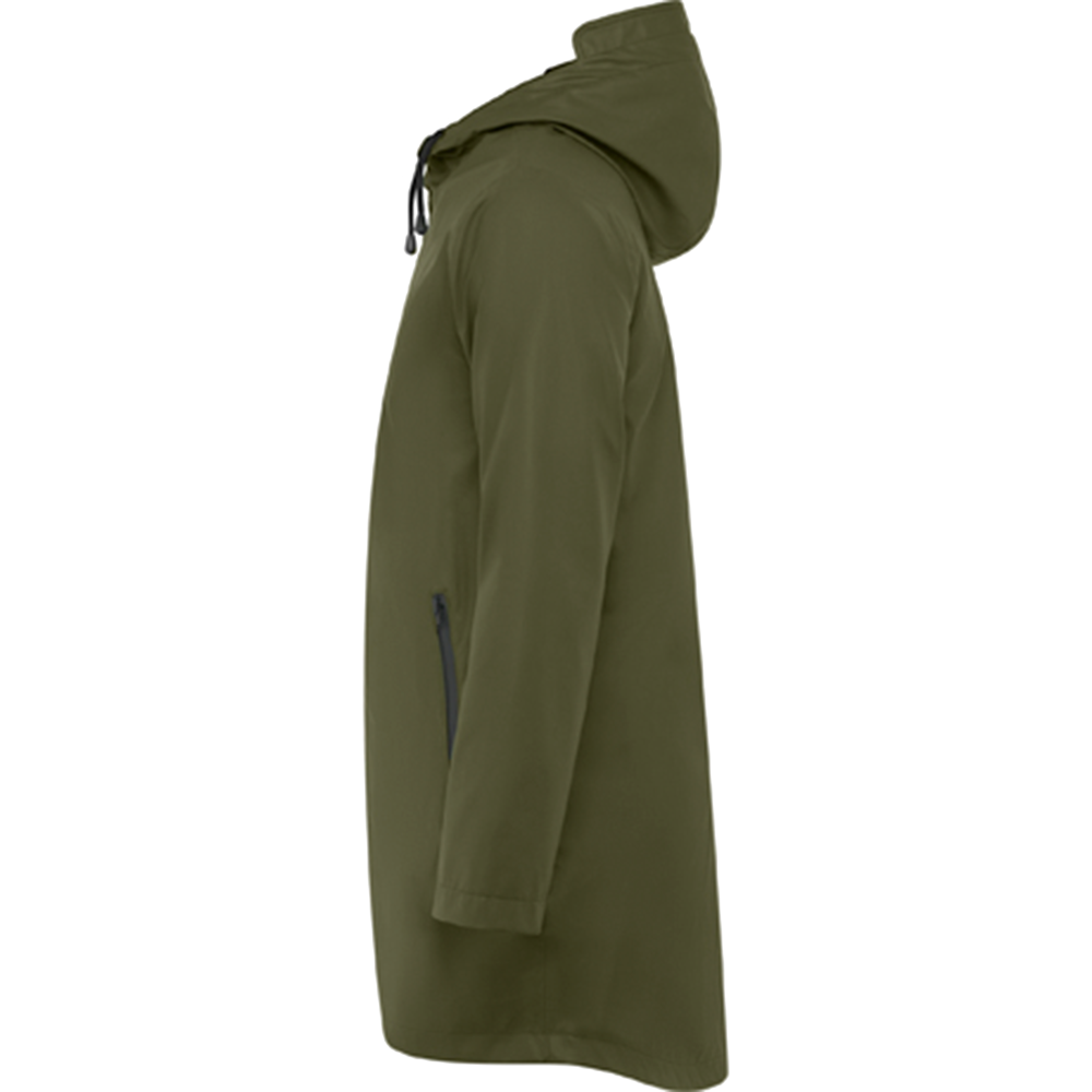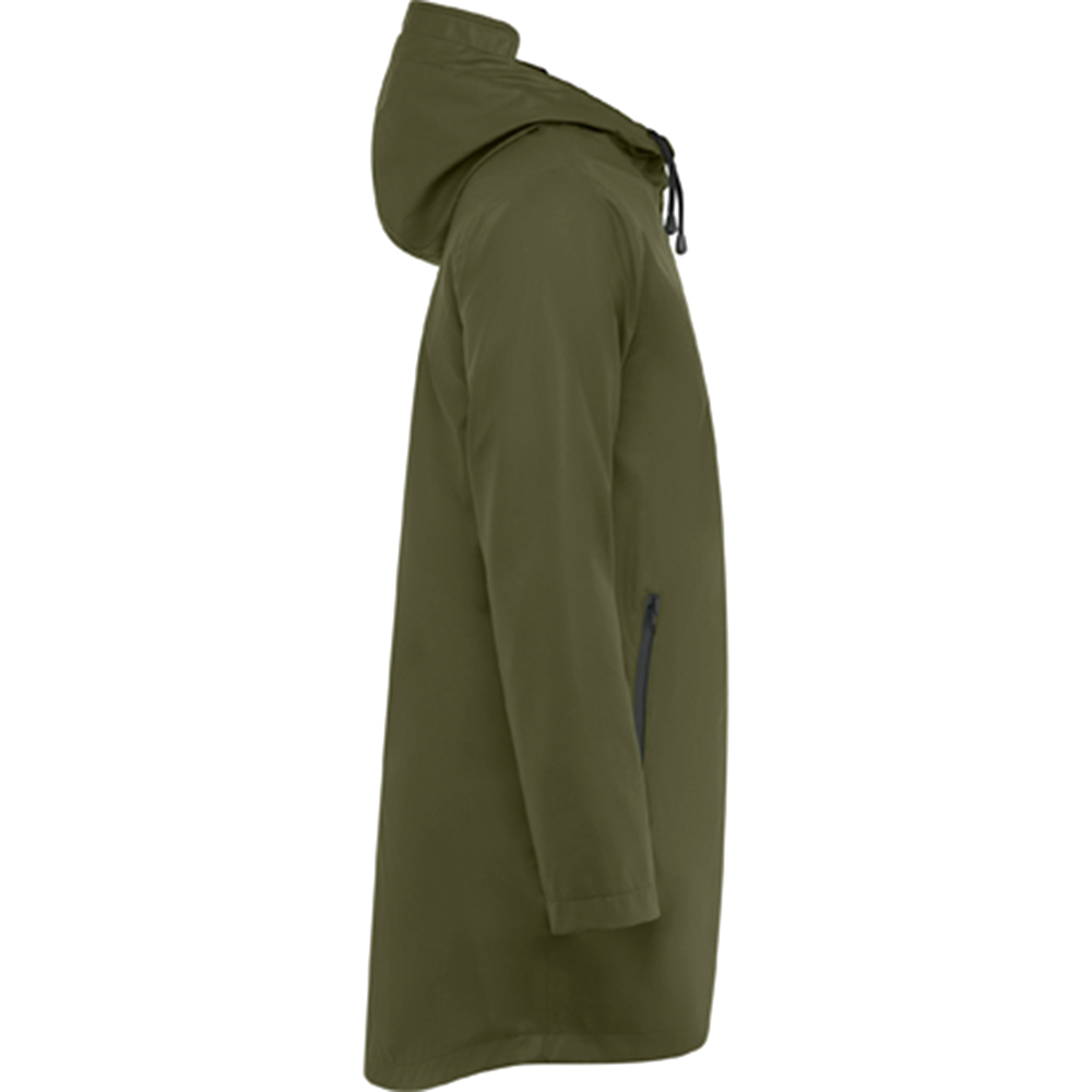 Capucha fija con visera. Cremalleras y costuras termoselladas. Bolsillos laterales