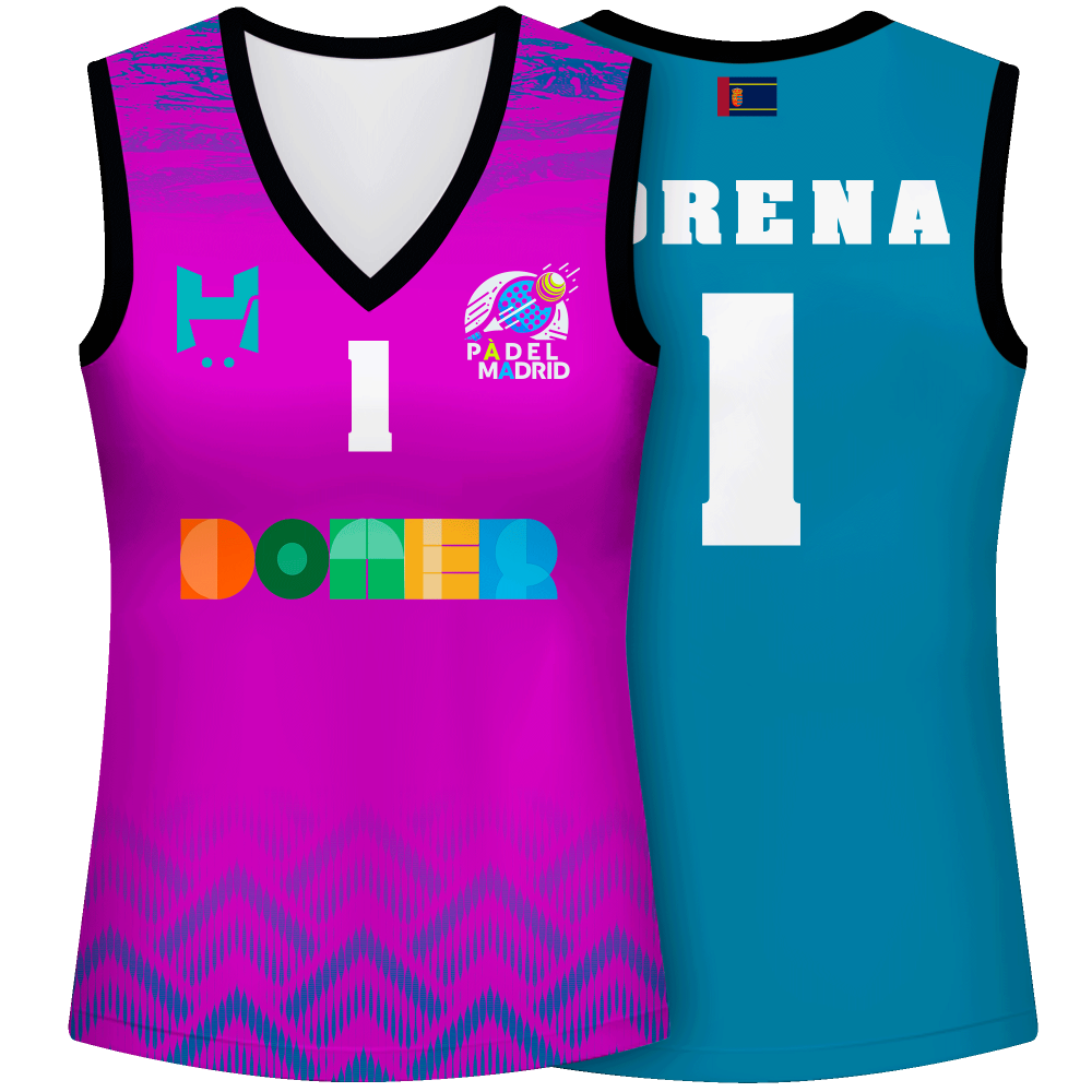 Camiseta de mujer ideal para actividades como pádel. Modelo Luanda sin mangas y con cuello pico que puedes personalizar hasta en 9 zonas diferentes.