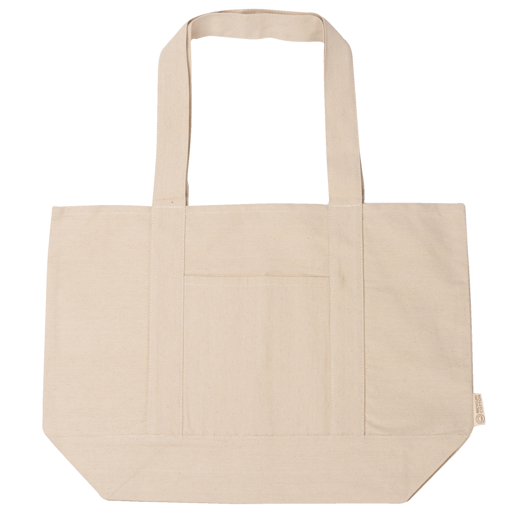 Amplia bolsa de playa de algodón reciclado de 280 g/m2. Asas reforzadas de 65 cm