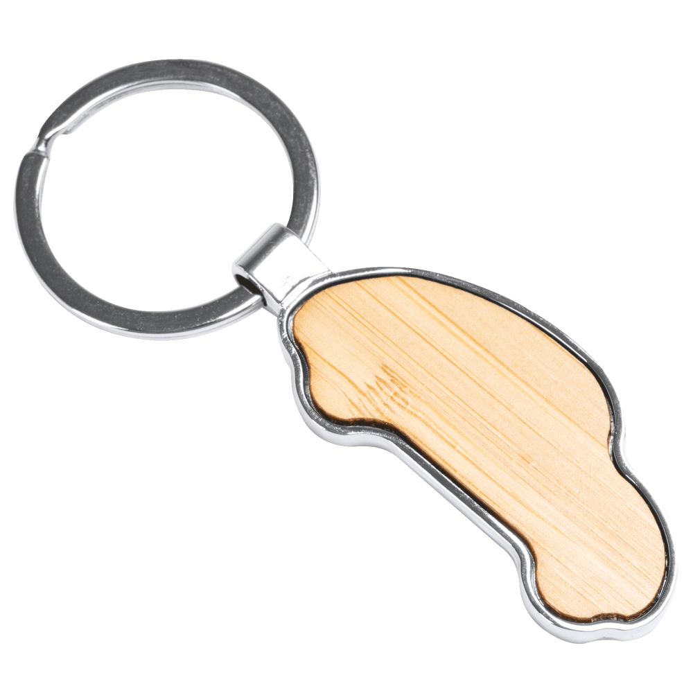 Llavero elaborado en bambú con acabado metálico