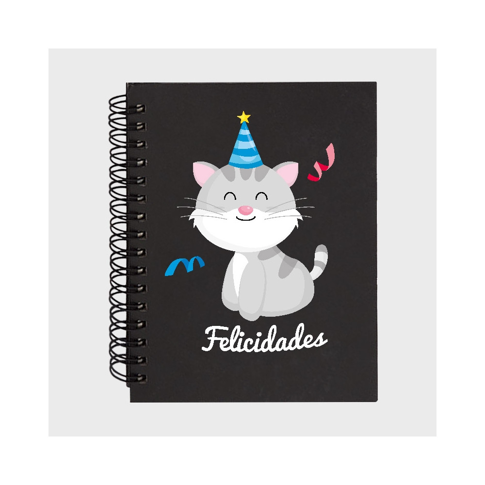 Este cuaderno es una idea ideal como regalo, con el mensaje de Felicidades