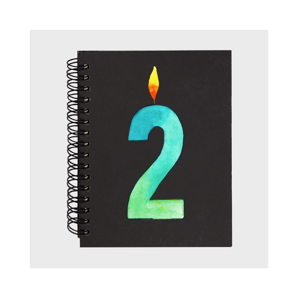 Este cuaderno es una idea ideal como regalo, con el mensaje de una vela con el número 2.