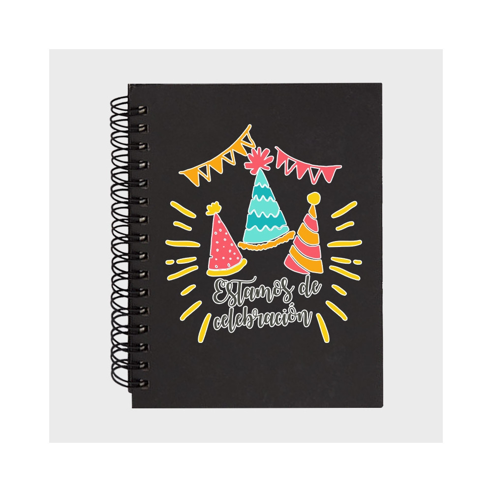 Este cuaderno es una idea ideal como regalo, con el mensaje de Estamos de Celebración.