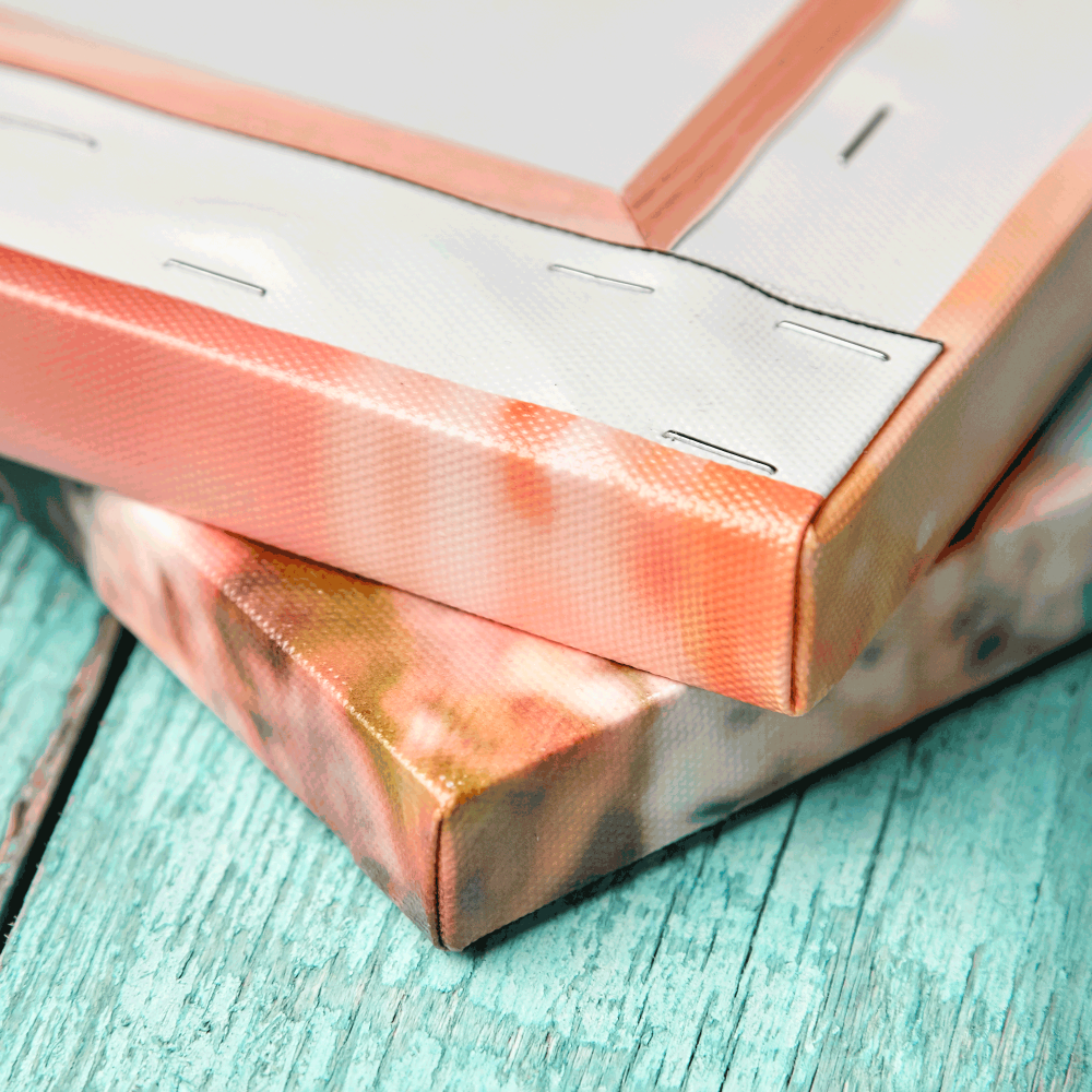- El lienzo personalizado te lo enviamos ya montado, tensado y sujeto con grapas clavadas en el bastidor.