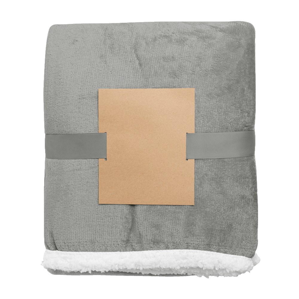 Manta polar de estilo Sherpa con polar fleece de 380 g/m2 que incluye una tarjeta ideal para marcaje y cinta a color a juego
