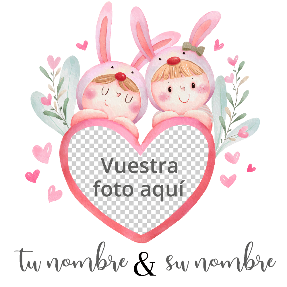 Mantel individual con base corcho para San Valentín diseño conejos personalizable