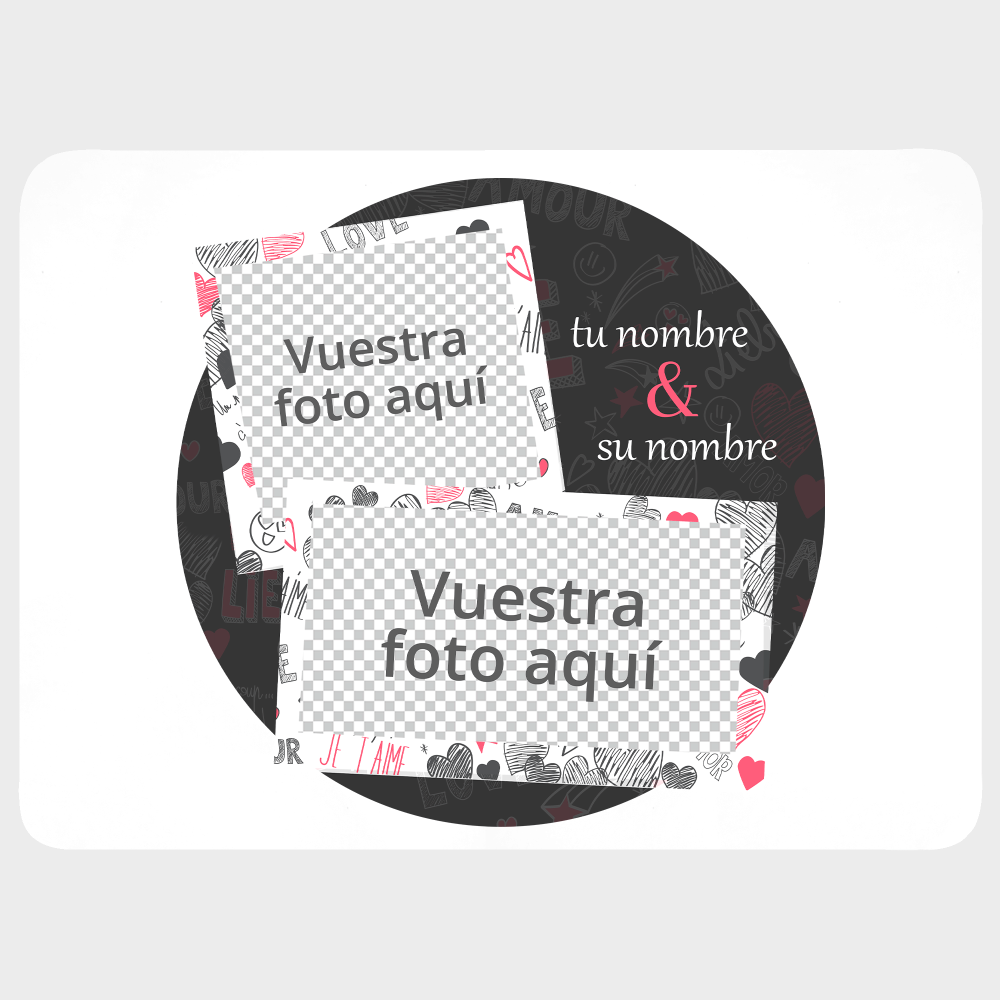 Mantel individual con base corcho para San Valentín diseño polaroids personalizable