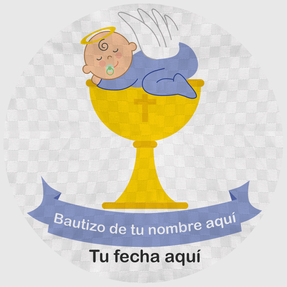 Mantel redondo individual tela grabada acabado brillante bautizo bebé copa