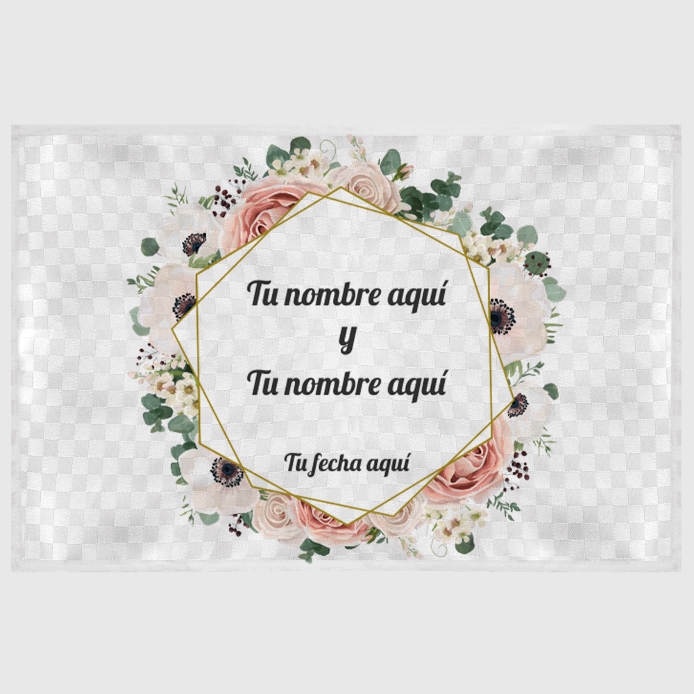 Este mantel lo puedes personalizar con los nombres y la fecha de la boda. Indícanos en los comentarios los nombres y/o fecha que quieras que imprimamos. Si no nos indicas nada, imprimiremos solo la ilustración.