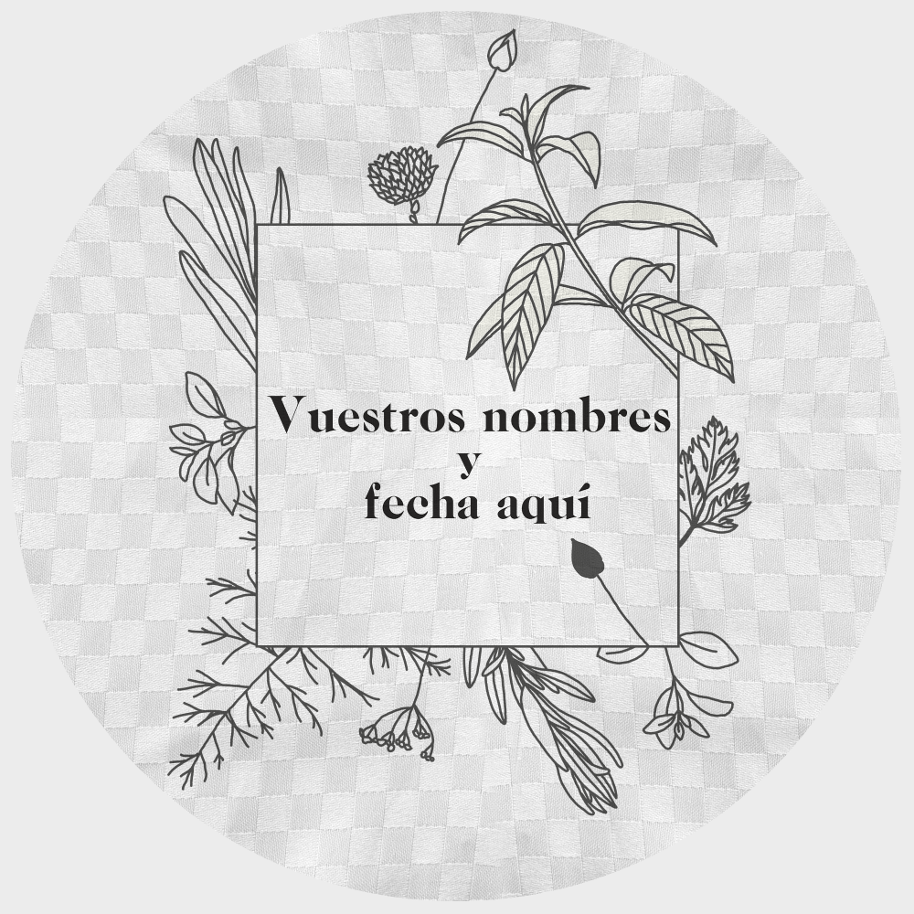 Este mantel lo puedes personalizar con los nombres y la fecha de la boda. Indícanos en los comentarios los nombres y/o fecha que quieras que imprimamos. Si no nos indicas nada, imprimiremos solo la ilustración.
