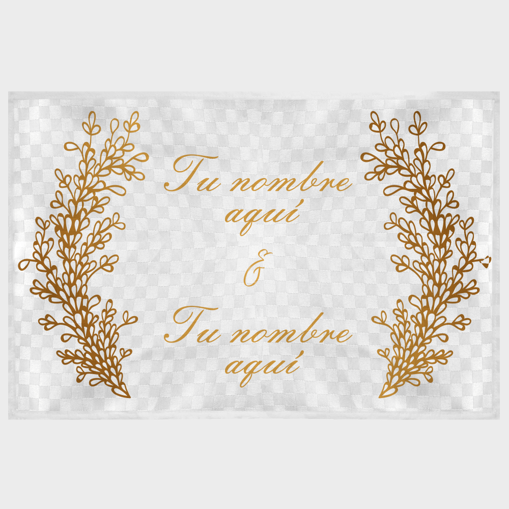 Mantel individual tela grabada acabado brillante boda hojas doradas