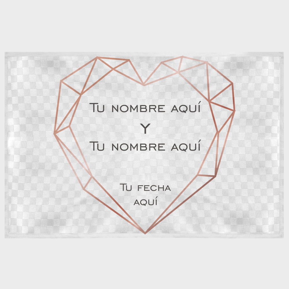 Este mantel lo puedes personalizar con los nombres y la fecha de la boda. Indícanos en los comentarios los nombres y/o fecha que quieras que imprimamos. Si no nos indicas nada, imprimiremos solo la ilustración.