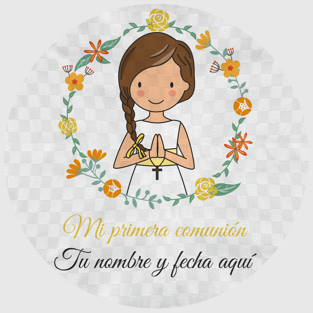 Mantel redondo individual tela grabada acabado brillante comunión chica