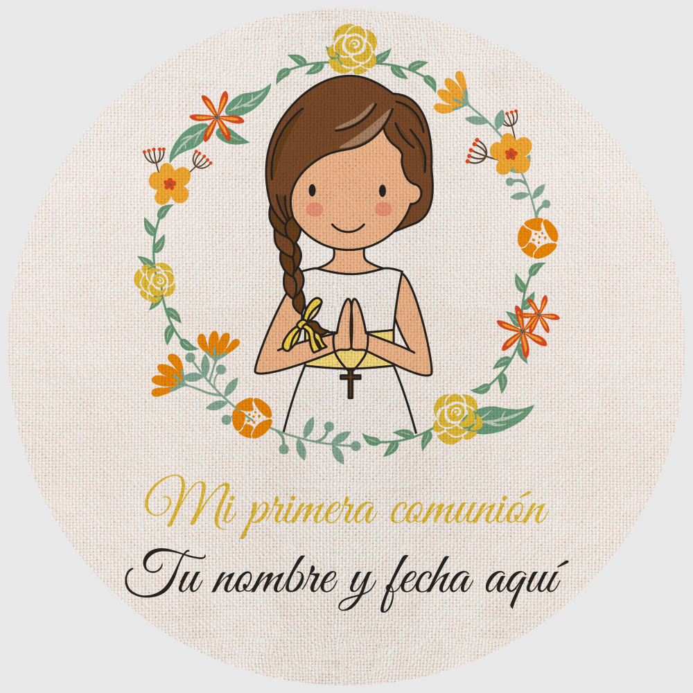 Este mantel lo puedes personalizar con el nombre y la fecha de la comunión. Indícanos en los comentarios el nombre y/o fecha que quieras que imprimamos. Si no nos indicas nada, imprimiremos solo la ilustración.