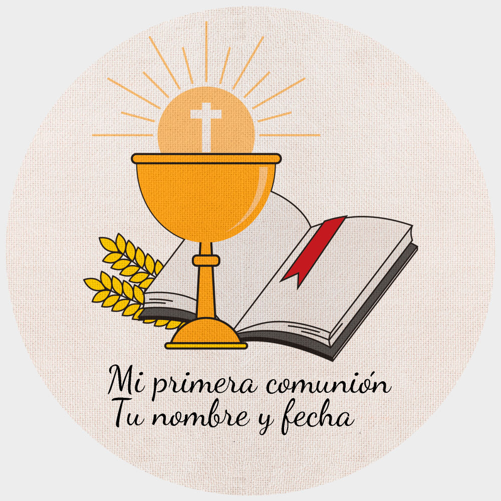 Este mantel lo puedes personalizar con el nombre y la fecha de la comunión. Indícanos en los comentarios el nombre y/o fecha que quieras que imprimamos. Si no nos indicas nada, imprimiremos solo la ilustración.