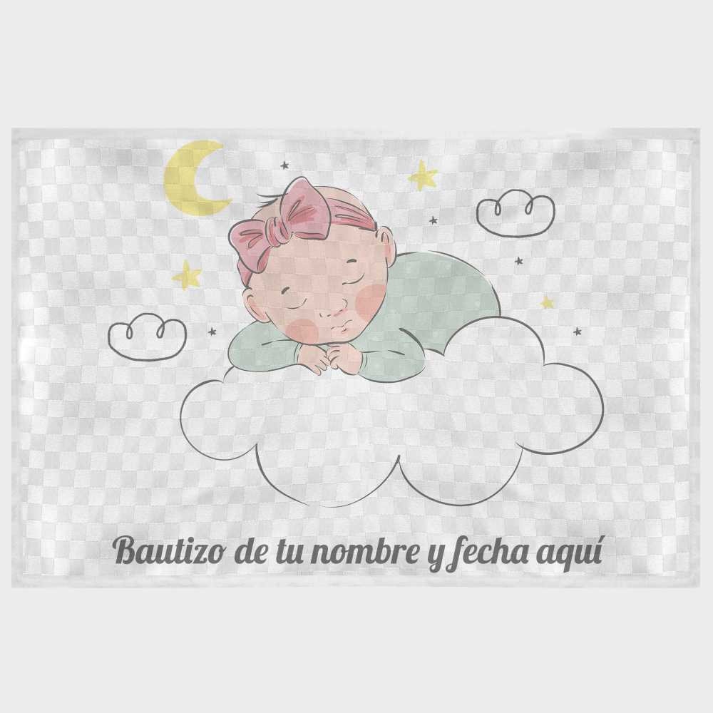 Este mantel lo puedes personalizar con el nombre y la fecha del bautizo. Indícanos en los comentarios el nombre y/o fecha que quieras que imprimamos. Si no nos indicas nada, imprimiremos solo la ilustración.