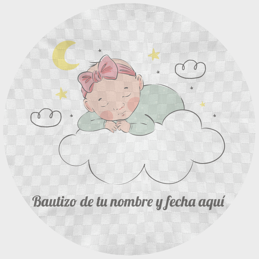 Mantel redondo individual tela grabada acabado brillante bautizo bebé