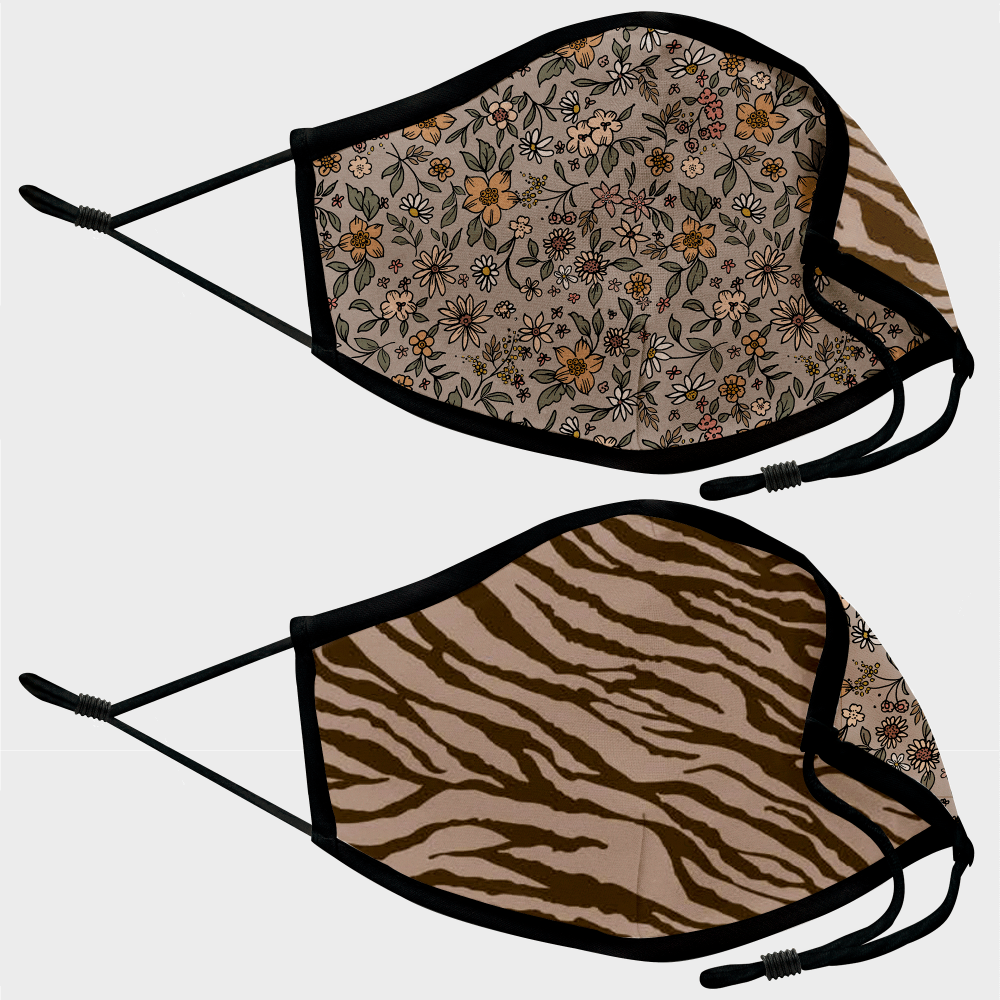 Mascarilla algodón orgánico reversible mediana flores gris homologada con protección +90%